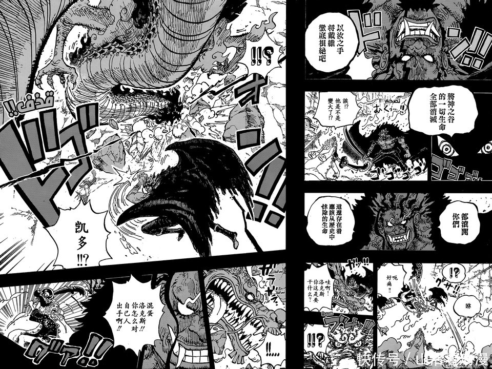 卡普和罗杰没有离开,白胡子和凯多,大妈等人被洛克斯击飞,他们就跟洛克斯分道扬镳了。他们原本来帮助洛克斯的,如今洛克斯都变成怪物,他们自然要离开神之谷。洛克斯海贼团也彻底完了,金狮子和约翰船长,甘孜等人打起来,伤亡惨重。