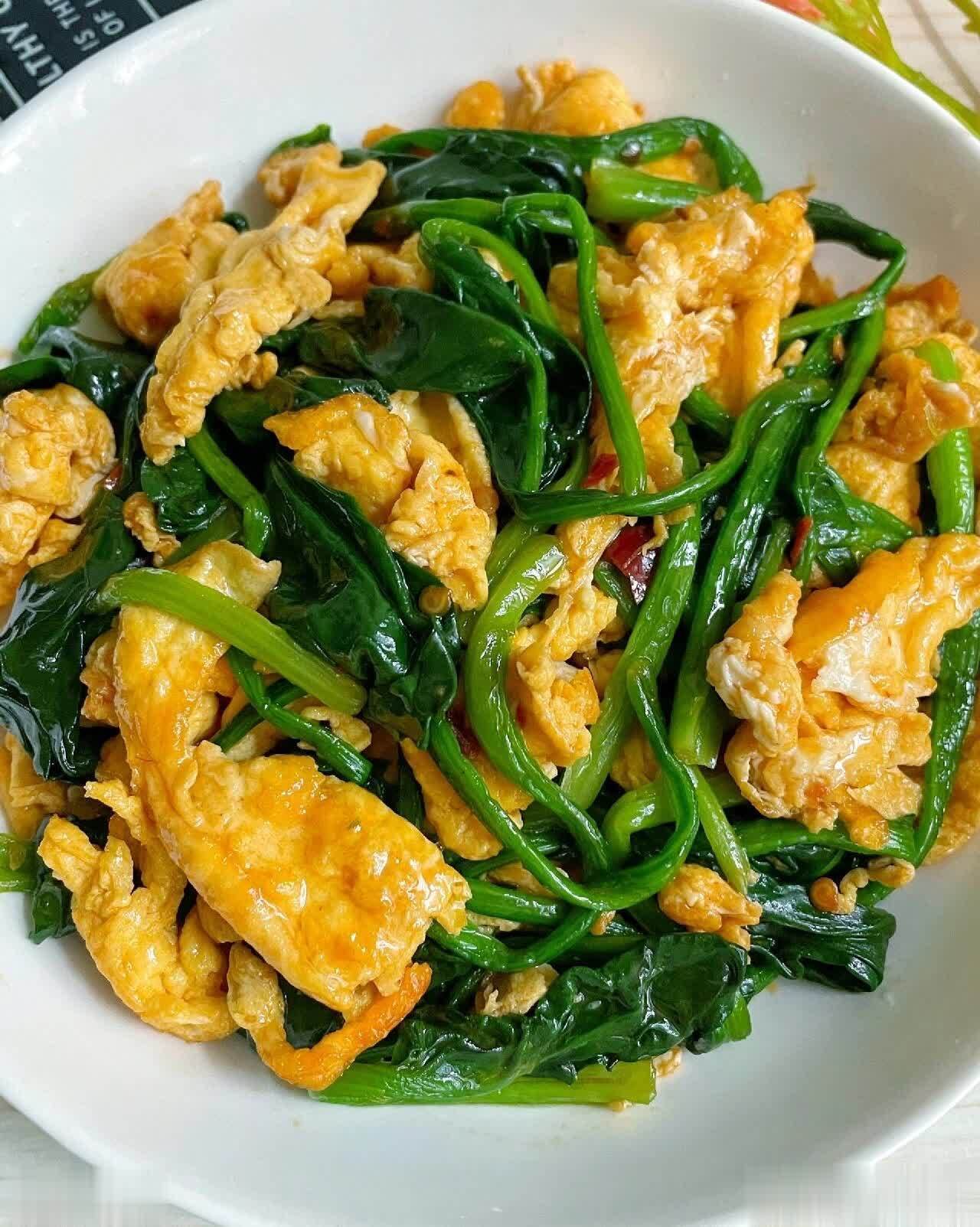 1. 菠菜洗净切段,焯水捞出过凉水;鸡蛋打散备用。