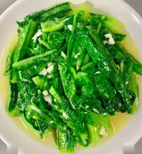 3. 烧一锅水,滴几滴油,水沸后下入油麦菜焯15 秒,立刻捞出沥干;