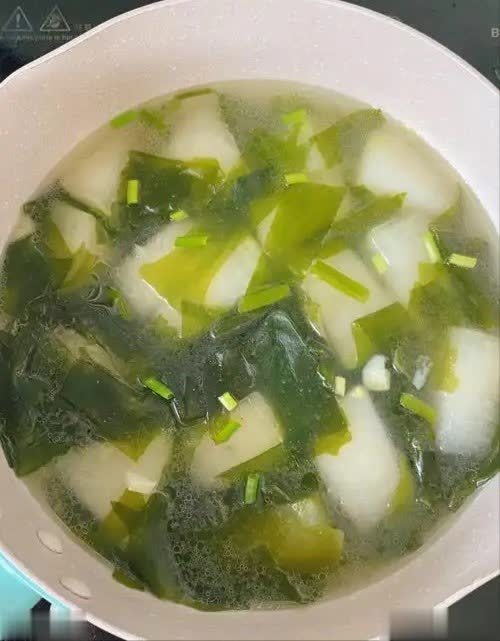 7. 盛出汤,撒上葱花,一碗美味的冬瓜海带汤就完成了。